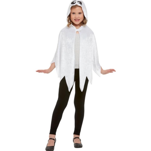Detská pelerína v bielej farbe s kapucňou je ušitá z bielej zamatovej látky.