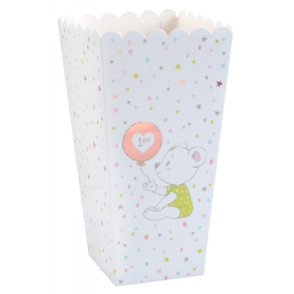 Papierové vysoké krabičky na popcorn či iné dobroty prvé narodeniny