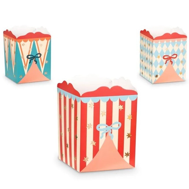 | Cirkusové papierové škatule na sladkosti Štýlové škatule na tematickú cirkusovú párty sú v kombinácii farieb. Sada … |