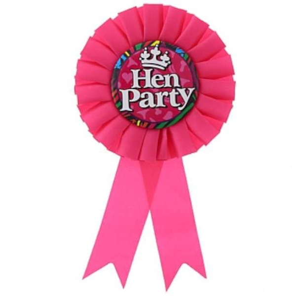 Uprostred je plastový farebný odznak s nápisom Hen párty
