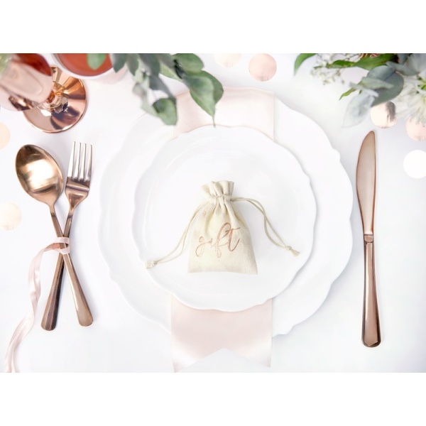 | č. 55WRB1019R Vrecúško bavlnené s ružovo zlatým nápisom Gift. Bavlnený sáčok s nápisom vo farbe ružového zlata … |