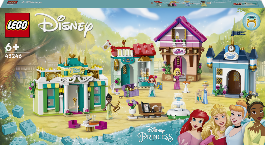 - Obrovská porcia možností - Obsahuje 4 budovy, menší priestor s kvetináčom, lavičkou a fontánou a minibábiky LEGO® | Disney Ariel, Šípková Ruženka, Popoluška a Tiana