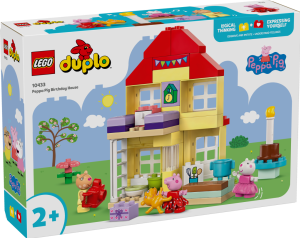 - "Potešte fanúšikov prasiatka Peppa pozvánkou na párty! Prasiatko Peppa a narodeninový domček (10433) umožňuje chlapcom a dievčatám vo veku od 2 rokov zúčastniť sa oslavy s Peppou a jej priateľmi. Táto hračka Peppa Pig je plná prvkov, ktoré deti dobre poznajú z televízneho seriálu. Nájdete tu figúrku Peppy, poníka Peteyho, ovečku Zuzku a tiež plyšového medvedíka Peppu. Vo vnútri ikonického domčeka sa nachádza izba, do ktorej sa postavičky dostanú po rebríku, a kuchyňa, v ktorej si deti môžu upiecť narodeninovú tortu. Nachádza sa tu aj kúpeľňa s umývadlom, kde dospelí deťom vysvetlia, aké dôležité je umývať si ruky, najmä pred jedením torty! Stavebnice LEGO® DUPLO® Peppa Pig sú navrhnuté tak, aby podporovali rozvoj rôznych zručností malých detí. Malí stavitelia si prehlbujú svoje schopnosti logického myslenia, keď napodobňujú skutočný život a inscenujú rôzne činnosti na oslave, ako napríklad vítanie kamarátov, rozdávanie darčekov a krájanie torty. Rozvíjajú tiež schopnosť vyjadrovať sa, keď si predstavujú, že sú súčasťou takejto radostnej oslavy."