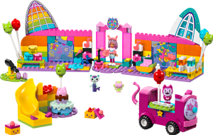 - "Gaby a jej párty izba (10797) je dokonalá diskotéková súprava pre fanúšikov animovaného filmu DreamWorks Gaby's Magic House. Táto zábavná hračka pomôže deťom od 4 rokov rozvíjať sebadôveru, sústredenie a schopnosť riešiť problémy. Táto disko stavebnica je skvelá hračka pre chlapcov aj dievčatá! Nájdete v nej Gaby, "DJ" kocúra Daniela Jamesa, vílu Mačku a Rybku a veľa hudobných párty hračiek vrátane pohyblivého párty autobusu so zabudovanými kľúčmi, otáčajúceho sa tanečného parketu, gitary, 2 mikrofónov a trblietavej disko gule - to všetko je pripravené na nekonečnú nápaditú hru! K doplnkom patria balóny a kolieskové korčule na diskotéku, popcorn, 2 poháre ľadovej triešte v oddychovej zóne a katapult s plechovkami na hru na rozbíjanie. Pre Gaby je pripravená torta a pochúťky, ktoré jej budú doručené po šmýkačke. Súprava obsahuje veľkú kocku pre začiatočníkov, ktorá deťom pomôže začať stavať. Farebné obrázkové návody sú skvelým intuitívnym sprievodcom pri stavaní."