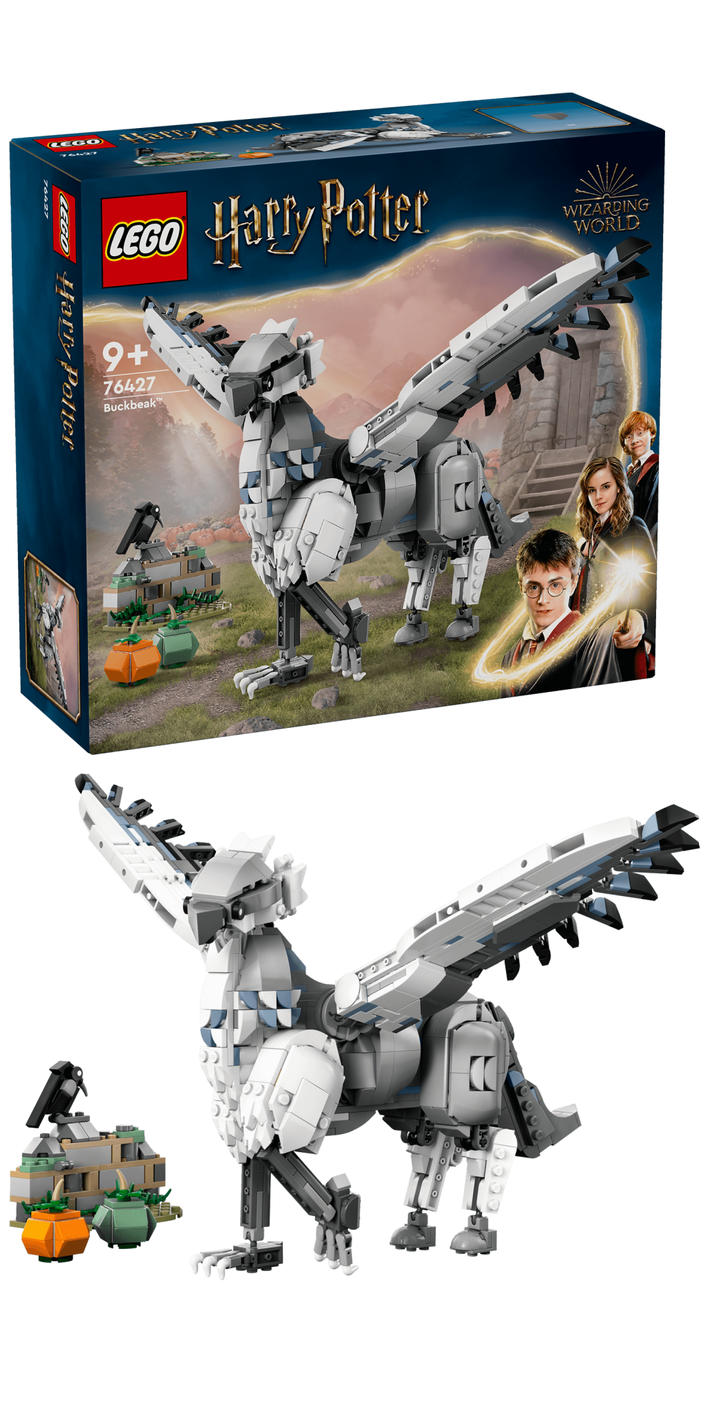 - Pripomeňte si s deťmi čarovné dobrodružstvá Harryho Pottera a postavte si hravého Klofana (76427), najväčší model obľúbeného hipogrifa z kociek LEGO®. Táto sada, ktorá je zábavným darčekom pre chlapcov, dievčatá a všetkých fanúšikov od 9 rokov, obsahuje pohyblivú LEGO figúrku magického tvora a malú zostaviteľnú časť Hagridovho dvora s 2 tekvicami a figúrkou vtáka na tvorivé rozprávanie príbehov a pútavé vystavenie. Nakloň Klofanovu hlavu, roztiahni jeho krídla, aby mohol vzlietnuť, a umiestni jeho nohy na chôdzu, sedenie alebo ikonický luk. Posuňte staviteľské zážitky detí na vyššiu úroveň s aplikáciou LEGO Builder. Umožňuje zväčšovať a otáčať modely v 3D, ukladať stavby a sledovať pokrok. Táto zberateľská stavebnica zo série LEGO Harry Potter poskytne vášmu malému čarodejníkovi, čarodejnici alebo mudlovi zábavnú tvorivú činnosť, ktorú si môže užiť sám alebo s priateľmi. Modely sa dajú kombinovať s ďalšími sadami LEGO Harry Potter (predávajú sa samostatne) a otvárajú dvere do sveta nekonečných možností na hranie.