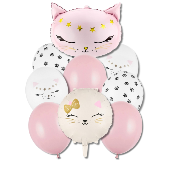 Roztomilá ružová balónová kytica s motívom mačky, ktorá je ideálnou dekoráciou a darčekom na detské oslavy, narodeniny a tematické párty. Kombinácia fóliových a latexových balónikov vytvára hravú a veselú atmosféru, ktorú si zamilujú najmä deti.