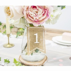 Novodobým hitom vo svadobných doplnkoch sú jutové doplnky. Krásna rustik dekorácia v podobe jutových visačiek s bielymi číslami ozdobí Váš svadobný stôl a zároveň uľahčí zasadací poriadok Vašich svadobných hostí.