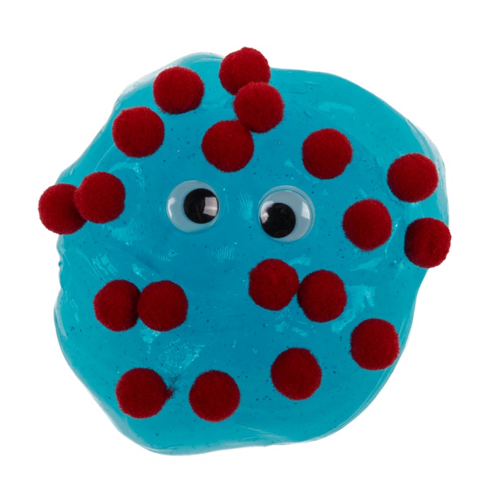 Sliz je pružný a trblietavý. Dodáva sa s bambuľkami a pohyblivými očami, takže deti môžu vytvárať zábavné