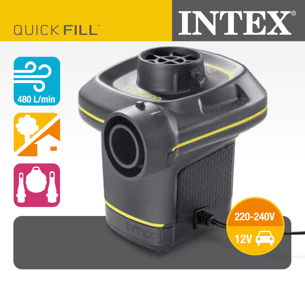 • Elektrické čerpadlo 220-240 V. Obsahuje 12 V adaptér na lepšie použitie vonku aj v interiéri. Súčasťou sú aj 3 pripojovacie trysky.