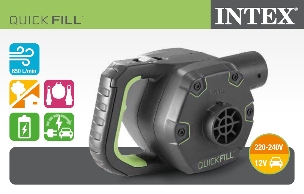 • Čerpadlo 220-240 V. Možno pripojiť do zásuvky alebo autozapaľovača. Obsahuje 3 zástrčky.