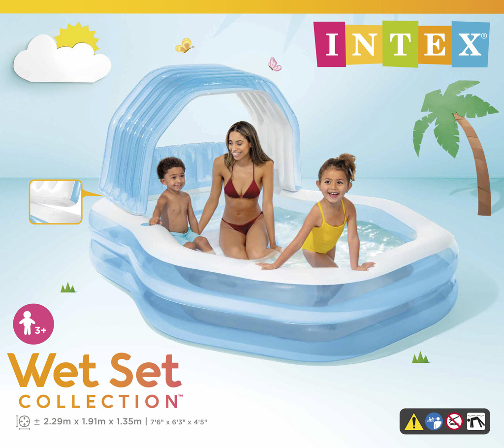 - Rodinný nafukovací bazén s objemom 530 l vody, v ktorom si môžete užiť veľa zábavy a príjemného osvieženia počas horúcich letných dní. Bazén má vypúšťací ventil Rozmery bazéna približne 229 × 191 × 135 cm. Vyrobený z testovaného pevného vinylu. Súčasťou balenia je opravná súprava.