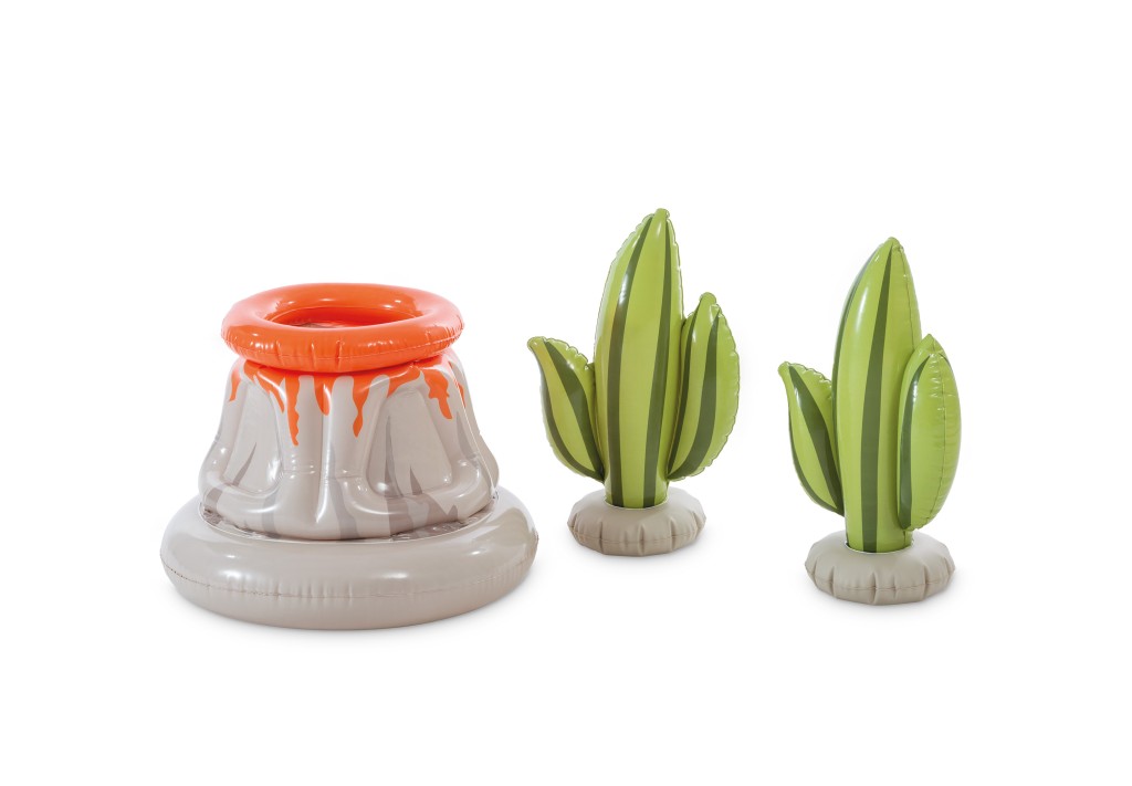 - Rozmery hracieho centra 201 × 201 × 36 cm. Zabudovaná sprcha s pripojením na záhradnú hadicu. Súprava obsahuje 3 nafukovacie dinosaury, 2 kaktusy a sopku na loptičky. Súčasťou balenia je aj opravná záplata. Maximálna nosnosť je 81 kg. Maximálny objem je 410 l.