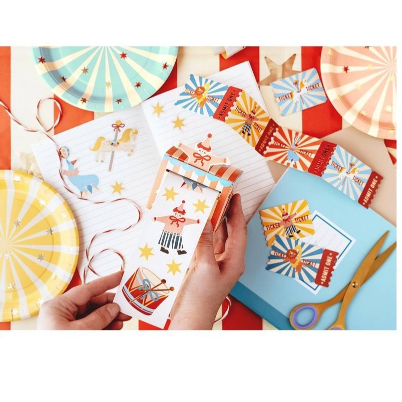 Farebné samolepky s originálnymi obrázkami zo sveta cirkusu.