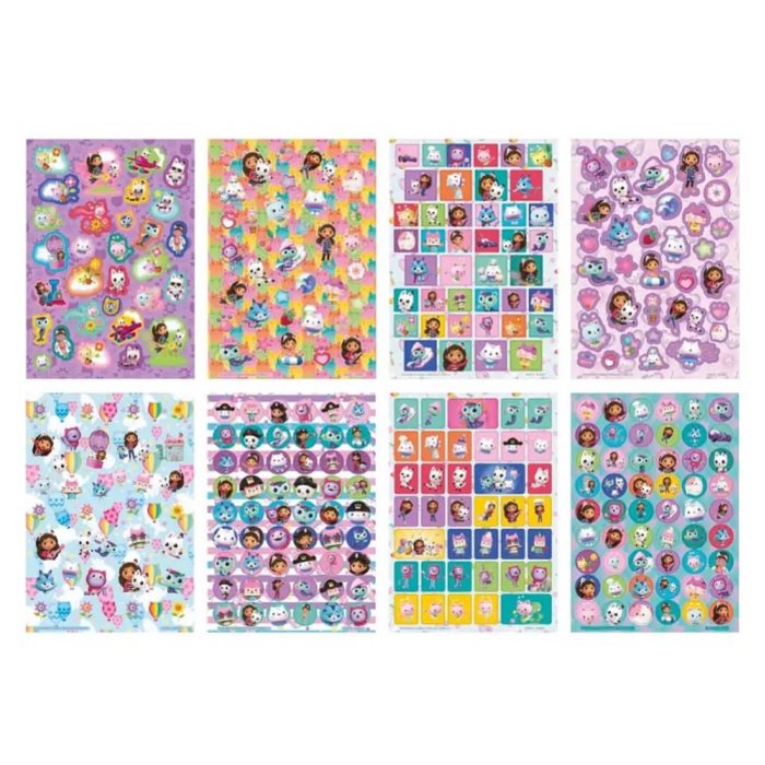 Táto sada samolepiek inšpirovaná svetom Gabbyho domčeka pre bábiky podporuje skúmanie a voľnú hru.