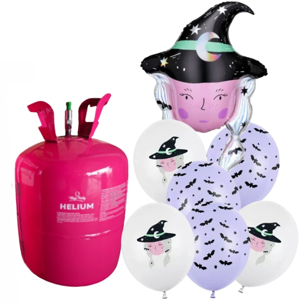 Sada hélia s balónmi na Halloween za skvelú cenu. Hélium je určené na nafúknutie 30 latexových balónov s veľkosťou 23 cm. Héliovú kyticu, ktorá je súčasťou sady, je možné ľahko nafúknuť.