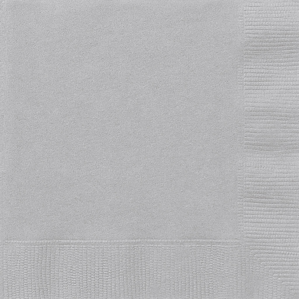 Skvelé dvojvrstvové papierové obrúsky vysokej kvality sú nevyhnutným doplnkom na váš stôl na oslavu v striebornej farbe.