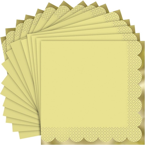 Pastelovo žlté papierové obrúsky so zlatým okrajom