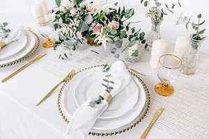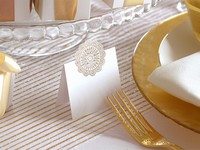 | č. 55ORD480084 Organza s dekorom biela so zlatým prúžkom 48cmx9m |