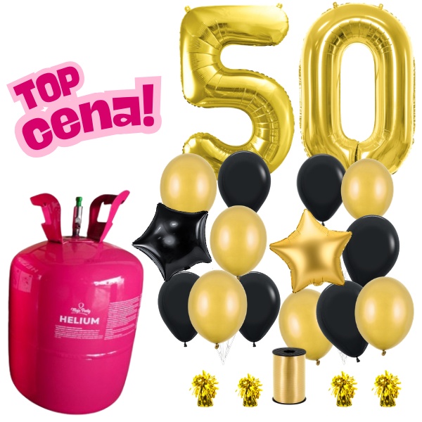 Veľký párty set na oslavu 50. narodenín s héliom (50) so všetkým, čo potrebujete na veľkolepú balónovú výzdobu Oslávte narodeninové výročia a 50. narodeniny ako profesionál. Na oslave okrúhlych narodenín by nemali chýbať balóniky plnené héliom a najmä veľké fóliové číslice, ktoré budú stredobodom výzdoby a skvelou dekoráciou na narodeninové fotografie. Túto fotopozadie oceníte na okrúhlych narodeninách alebo ju ocení ako prekvapenie samotný oslávenec.