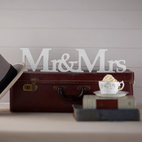 Dekorácia v podobe dreveného nápisu Mr & Mrs je skvelá dekorácia na svadobný stôl novomanželov.