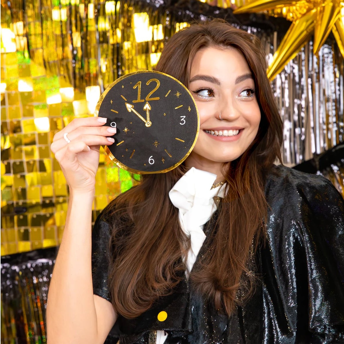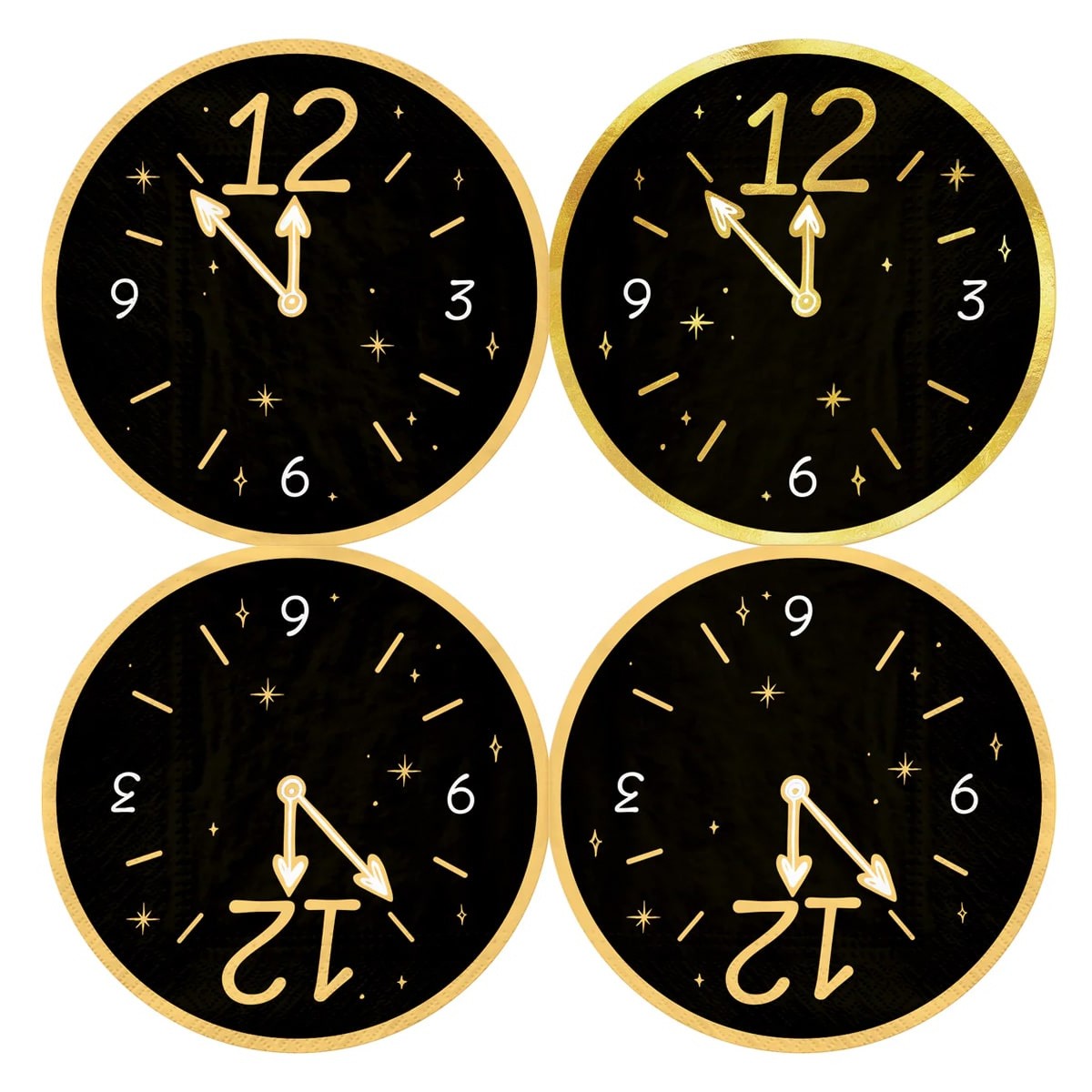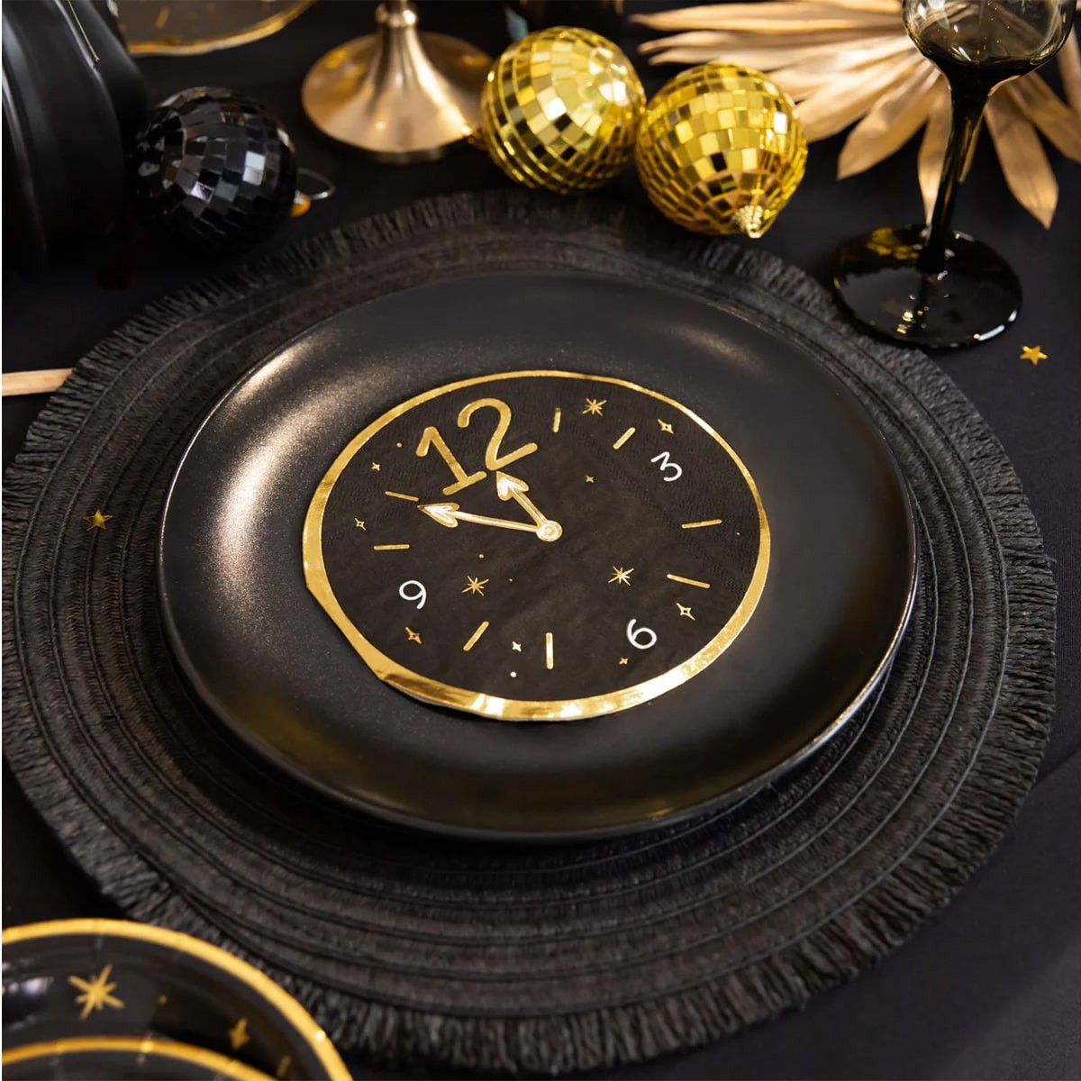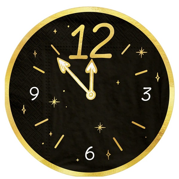 Krásne papierové obrúsky v tvare hodín, ktoré upozorňujú na blížiacu sa polnoc.