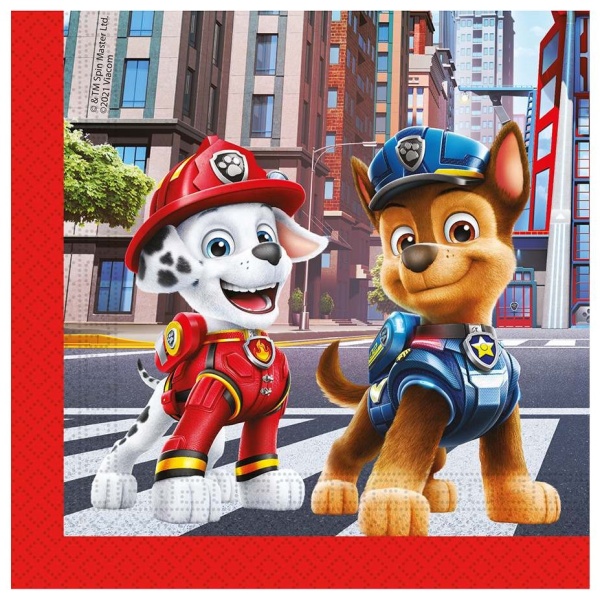 Papierové servítky s obľúbenými postavičkami psích kamarátov a záchranárov Labkovej patroly.