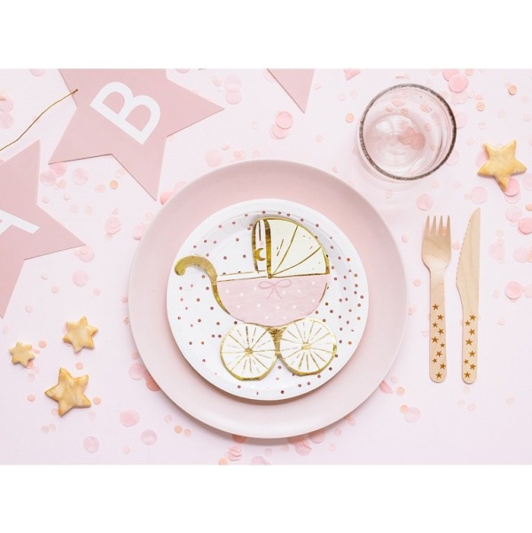 Papierové servítky - Kočík ružovej farby sú skvelým doplnkom stolovania na oslavu narodenia dievčatka, jej narodenín alebo tematickej párty Baby shower.