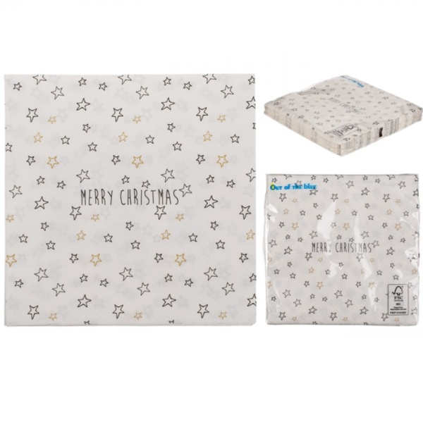 Papierové vianočné servítky s hviezdičkami a s nápisom Merry Christmas sa budú skvele vynímať na vašom krásne prestretom vianočnom stole.