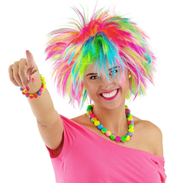 Dúhová pestrofarebná šibalská parochňa Rainbow je vhodná pre dospelých a je perfektným doplnkom na párty