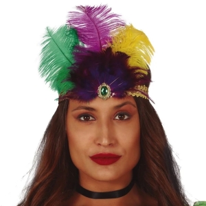 Luxusná flitrová čelenka Charleston s farebným perím a ozdobným kamienkom.
