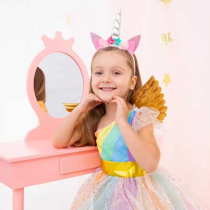 Krásna čelenka s motívom jednorožca so strieborným rohom poteší všetky malé aj veľké dievčatká, ktoré sa rady hrajú na jednorožce a milujú čarovný dúhový svet.