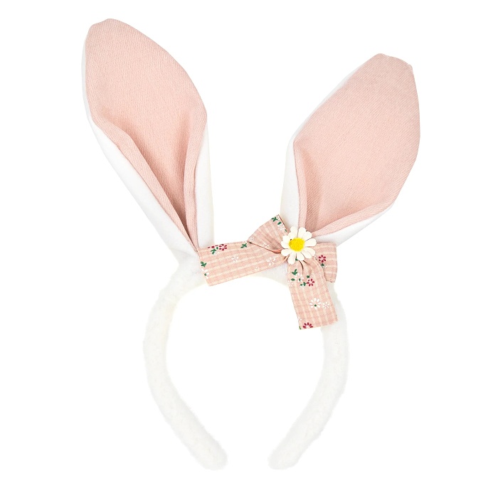 Originálna čelenka so zajačikovými ušami a mašľou v bielo-ružovej kombinácii je roztomilý doplnok, ktorý okamžite navodí veľkonočnú atmosféru.