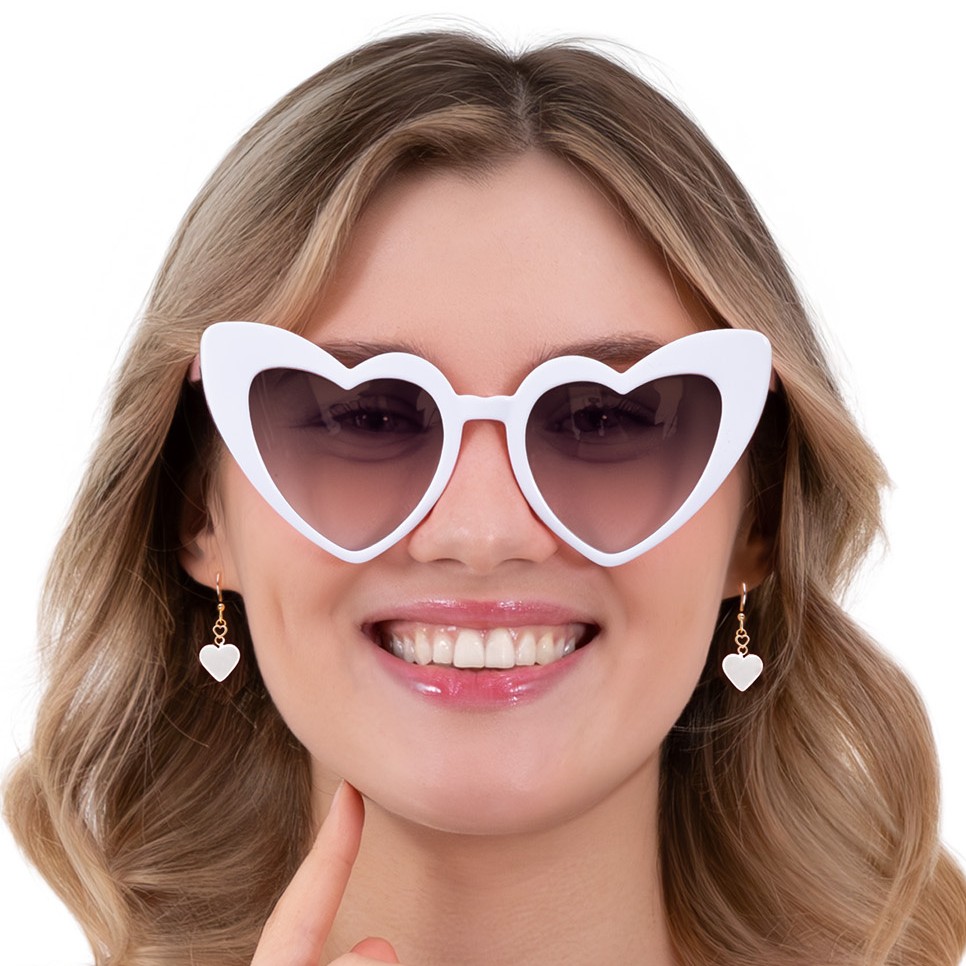 Slnečné okuliare v tvare srdca v bielej farbe.