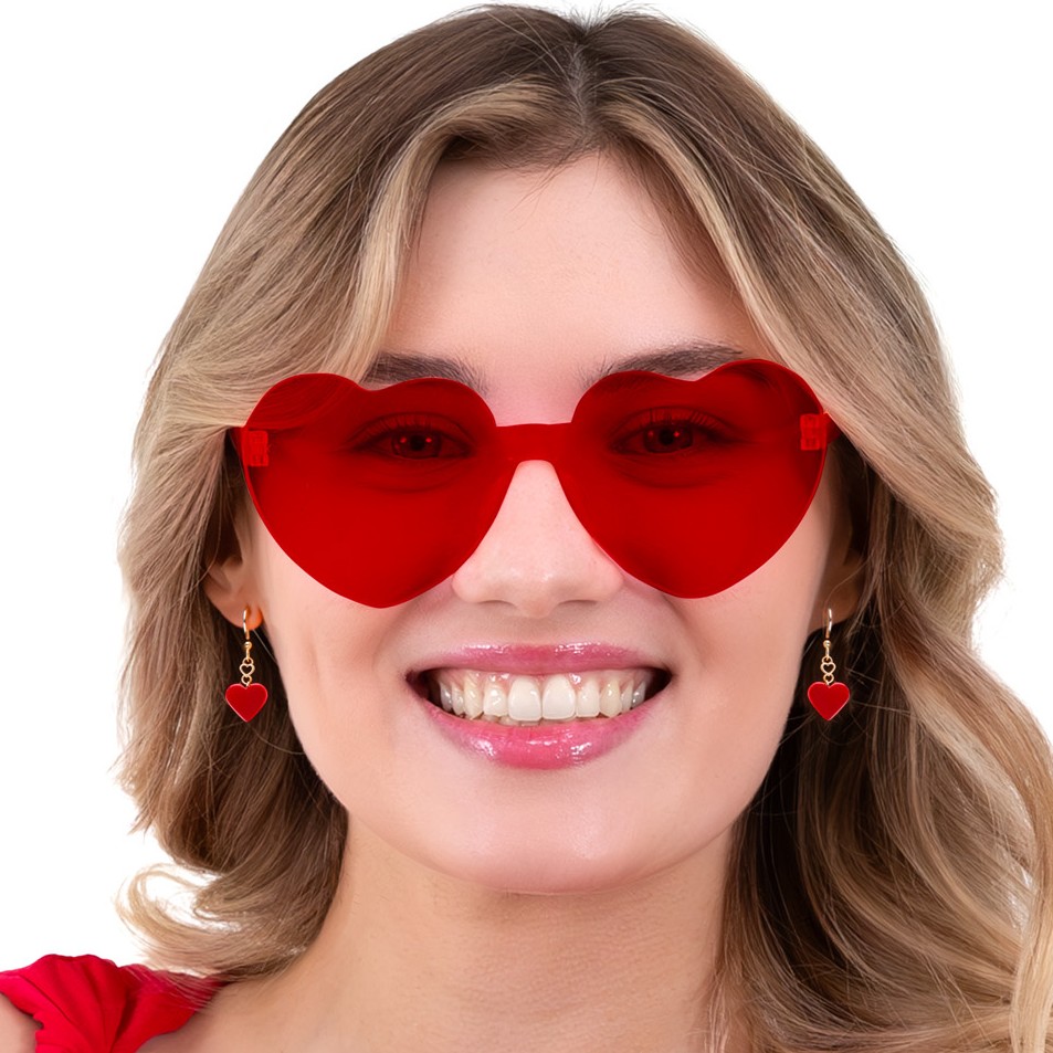 Okuliare v tvare srdca v červenej farbe.