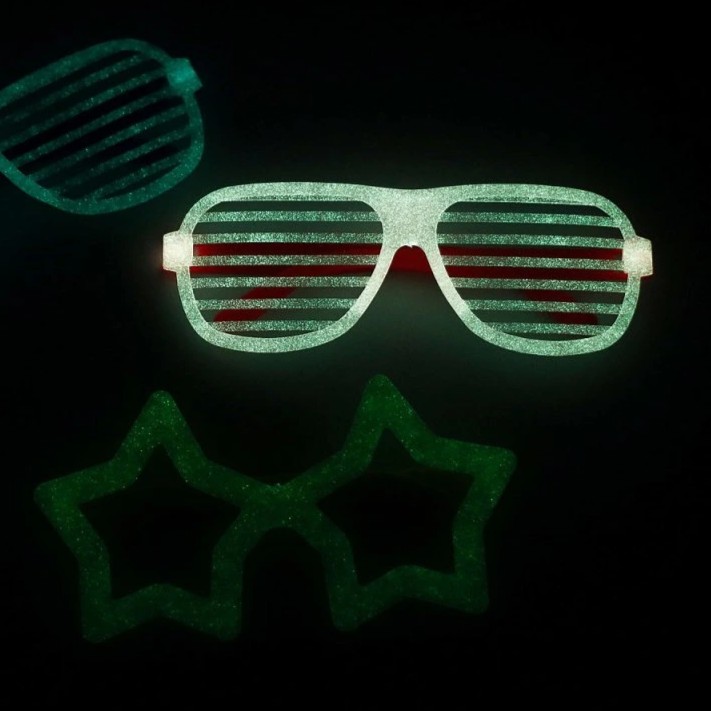 Tieto originálne okuliare svietia v tme atakže sa zaručene stanete hviezdou večera.