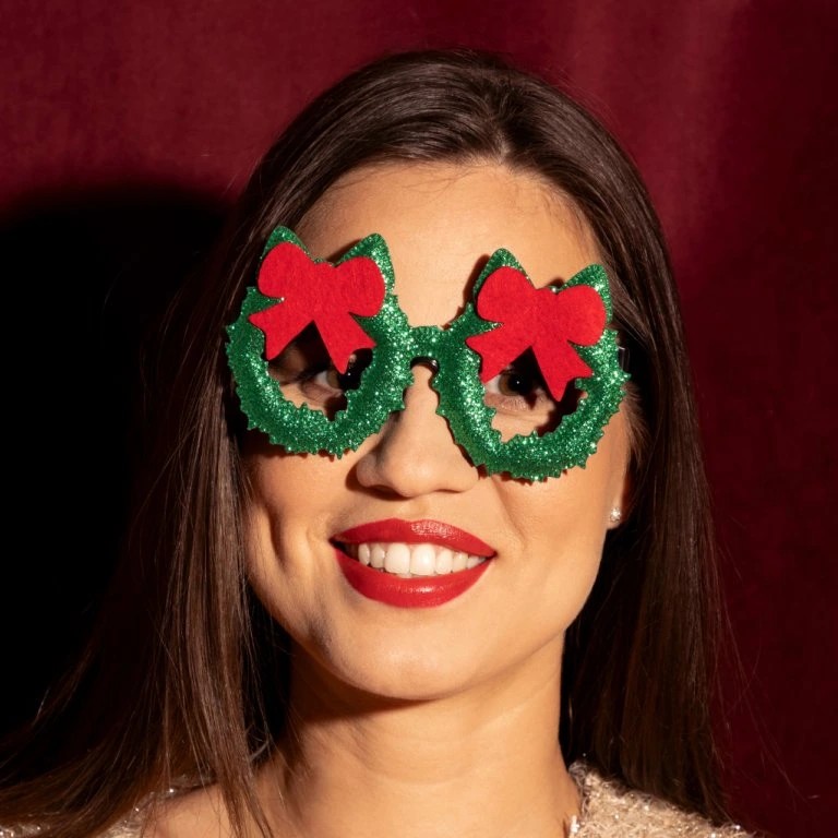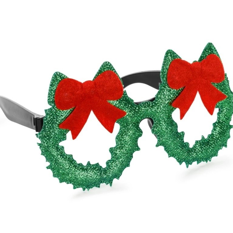 | Párty okuliare so zelenými trblietkami Originálne a pekné poháre sú v tvare vianočného venca s červenou … |