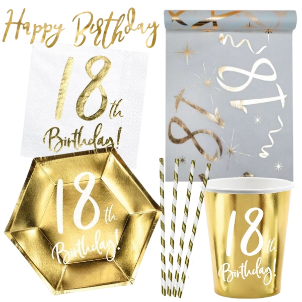 Zlatá party kolekcia pre 6 osôb na oslavu osemnástych narodenín. Oslava narodenín vás niekedy môže prekvapiť. Nezabudnite na narodeniny svojich blízkych, ušetrite čas a peniaze, zakúpte si výhodný narodeninový set na oslavu narodenín. Narodeninová kolekcia v zlatej farbe je neutrálnou, elegantnou voľbou, ktorú ocení takmer každý.