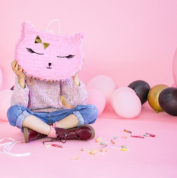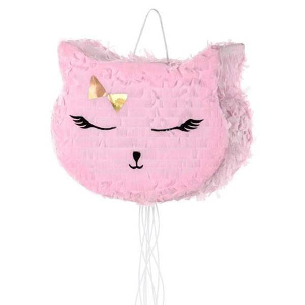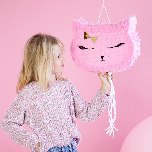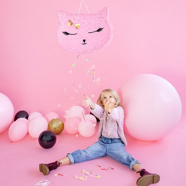 Ružová piňata Mačka sa naplní sladkosťami pre deti a o zábavu na narodeninových alebo detských oslavách je