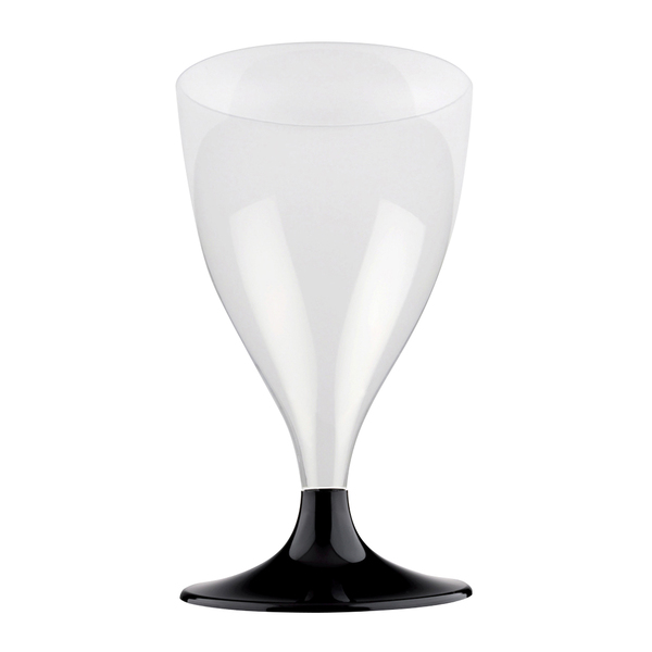 Poháre plastové v priehľadnom prevedení s čiernou stopkou.