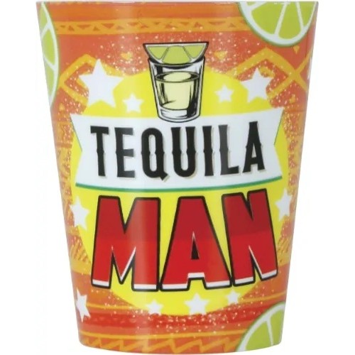 Plastové panáky v modrej farbe s potlačou Tequila Man