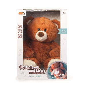 - Tento rozprávkový medveď je taký mäkký. Rozpráva 4 známe rozprávky: O Červenej čiapočke, O perníkovej chalúpke, O Popoluške a Soľ nad zlato. Dajú sa nastaviť dve úrovne hlasitosti. Umiestnite ho asi 1,5 m od steny a sledujte krásne dúhové predstavenie, ktoré hrá projektor na chrbte medveďa. Má 3 úrovne intenzity svetla LED. Po 10 minútach nečinnosti sa sám vypne. Vek: 3+. Balenie obsahuje medvedíka s projektorom. Vyžaduje 3 x AAA batérie (nie sú súčasťou balenia).