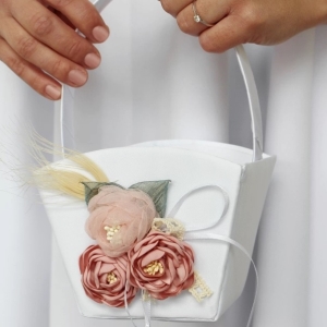 Saténový svadobný košíček je štýlovým doplnkom a nemal by chýbať žiadnej družičke.