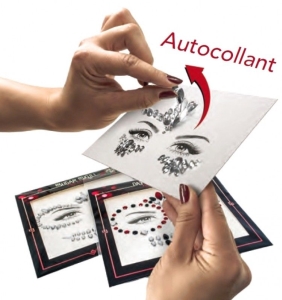 Kamienky sú samolepiace, takže ich možno priamo umiestniť na tvár bez potreby lepidla.
