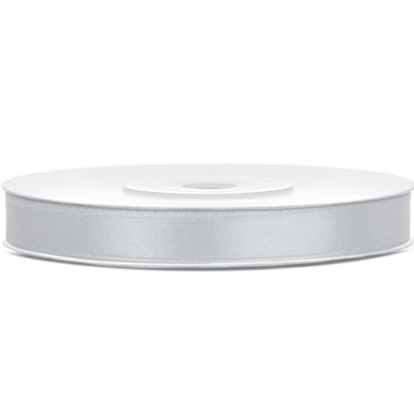 Úzka a elegantná saténová stuha v striebornej farbe s rozmermi 0,6 cm x 25 m.