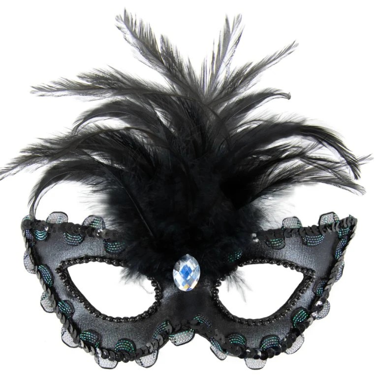 | Karnevalová šatka v čiernej farbe s diamantom a pierkom Šatka je vybavená textilnou šnúrkou na zaväzovanie Výška … |