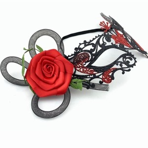 pod touto luxusnou Filigránovou škraboškou s červenou ružou po strane.