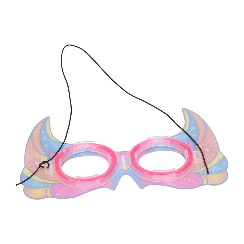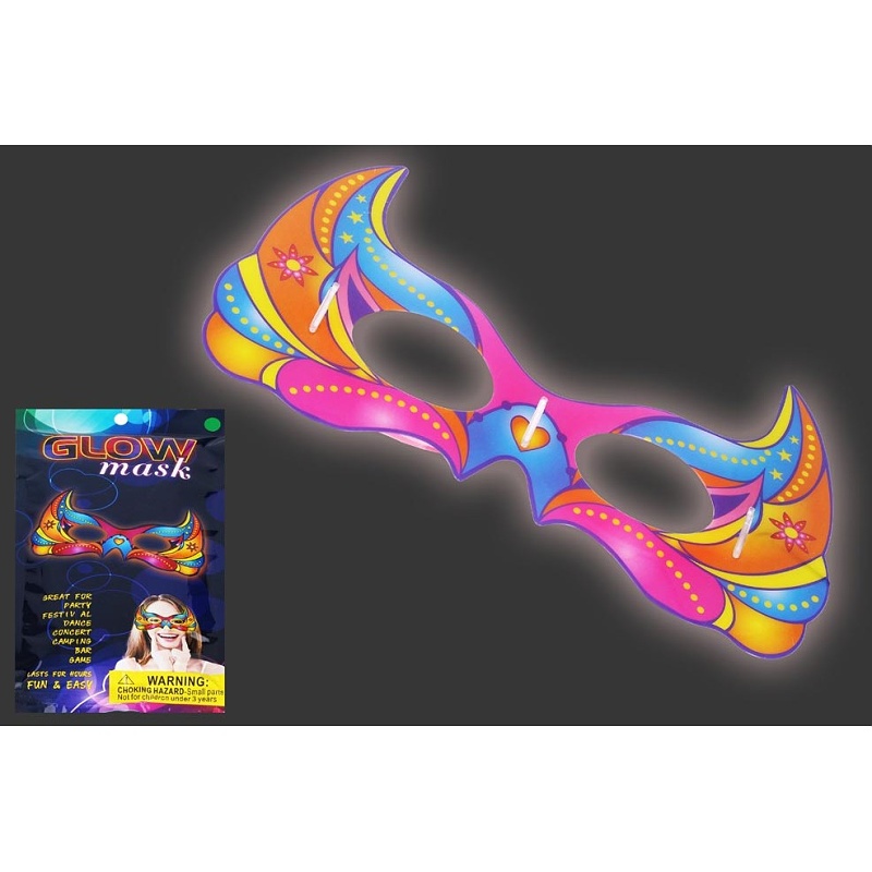 Svietiaca maska je ľahká, ľahko sa používa a po aktivácii svietiacich tyčiniek poskytuje výraznú žiaru v priebehu niekoľkých hodín.