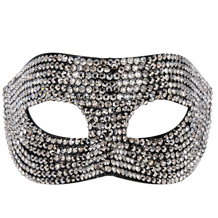 Čierna benátska maska so striebornými zirkónmi.