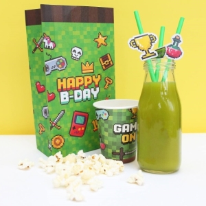 Papierové slamky Game On Party s hernými prvkami sú dôležitým doplnkom stolovania pre malých