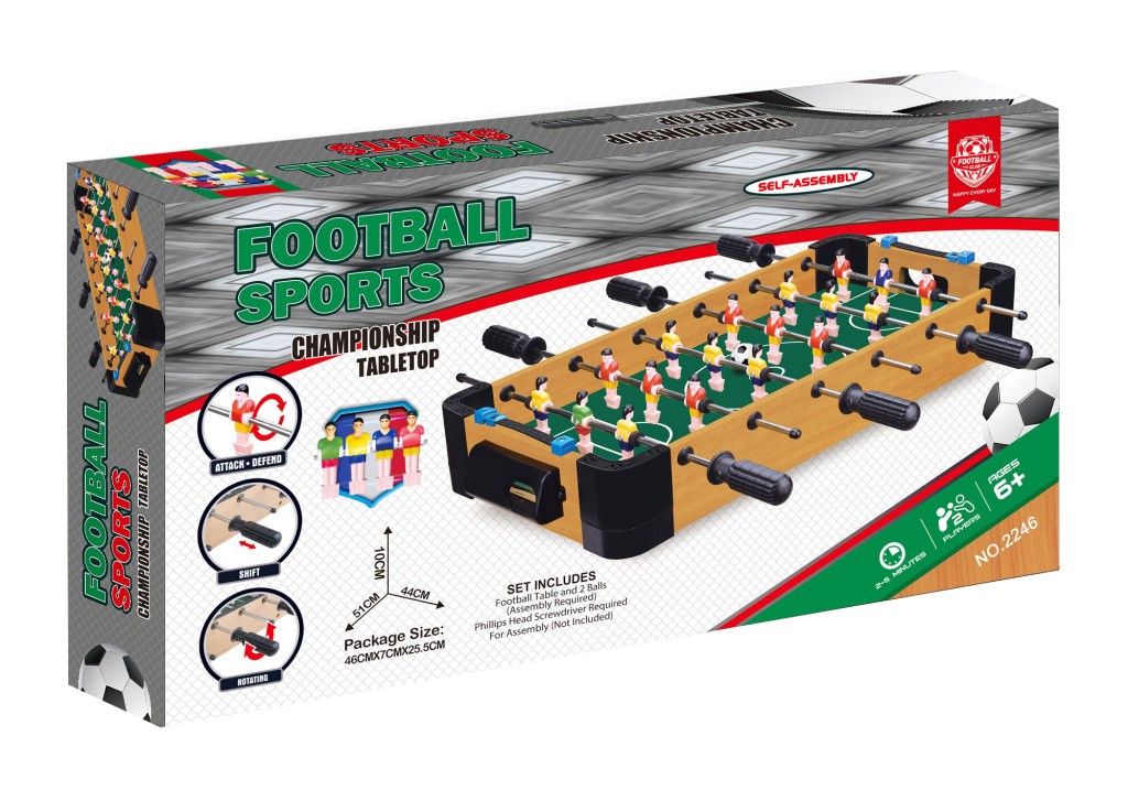 Zábavná futbalová hra pre všetkých fanúšikov tohto obľúbeného športu! Balenie obsahuje drevený stolný futbal, 2 loptičky. Hra je vhodná pre dvoch hráčov od 6 rokov. Rozmery 46 × 7 × 25,5 cm.